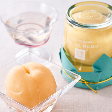 瓶詰めの、岡山県産白桃。「水熟製法」という独自の方法で、桃の自然な美味しさをそのままに長期保存用に加工。シロップも甘さ控えめで、桃本来の香りと甘みを引き立ててくれます。見た目にもオシャレな瓶入りで、女性へのちょっとしたギフトにおすすめです。