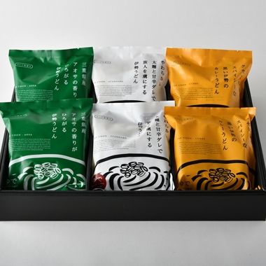 「かいだ製麺」の伊勢うどんは、県産小麦と宮川の天然水を使用。茹でてタレをかけるだけと至ってシンプルですが、その分、素材の味わいが引き立ちます。カレー&あおさとの詰めせ。