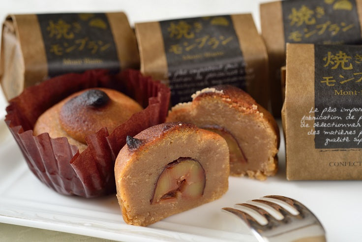なめらかな栗ペーストを練り込んだ生地に、蜜漬けの渋皮栗を入れて焼き上げた「焼きモンブラン」。まさに栗づくしな濃厚な味わいの焼き菓子。常温で持ち運べて賞味期限も長いのが嬉しい。カジュアルなプチギフトや手土産に。