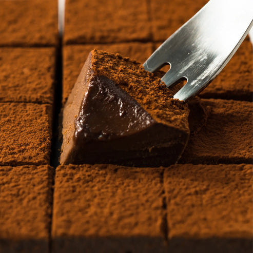 ここの生チョコの最大のポイントは、ずばり水分量。日本人の舌に合うよう科学の力を駆使しながら研究し、驚くほどみずみずしくなめらかな口どけを実現しています。