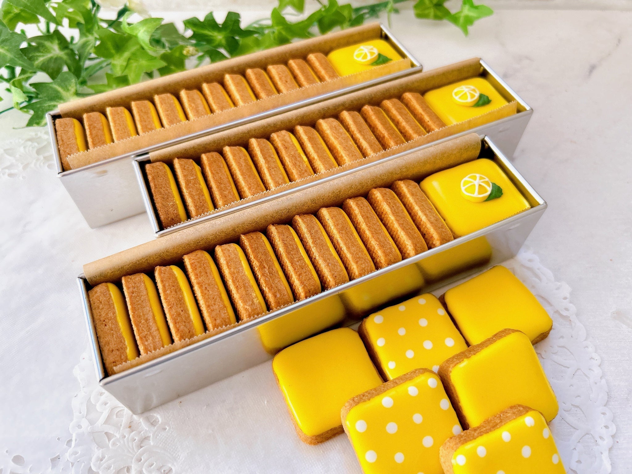 有機レモン果汁100%のレモンアイシングを使ったクッキー詰め合わせ。一口サイズのクッキーに、レモンイエローのドット柄、無地、レモンパーツ、3種の鮮やかなアイシングデコレーション。ほどよい酸味がGOOD。ホワイトデーのお返しに贈れば、好印象間違いなし!