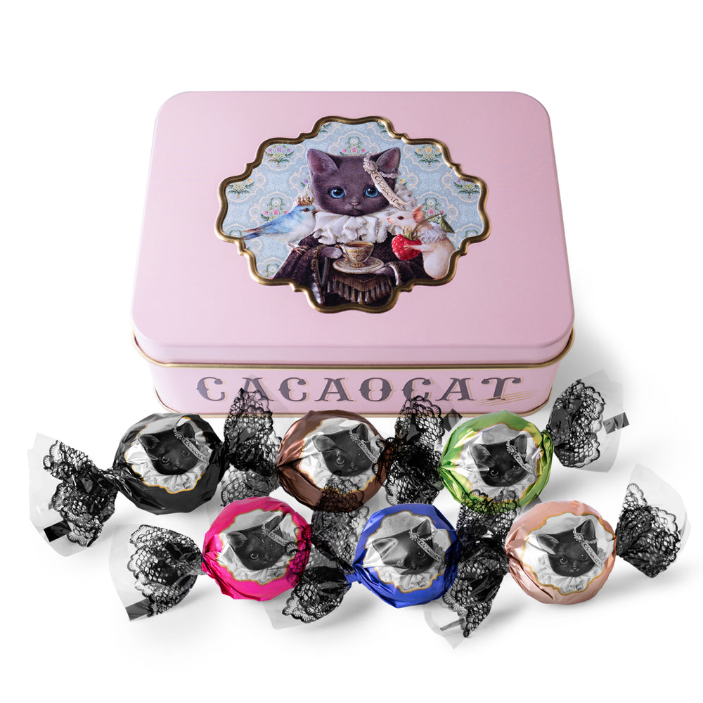 ブランド人気のチョコレートが生チョコに。2層のチョコレートで、うっとりするような口どけを楽しめます。1粒ずつ猫デザインの包み紙に入っていて、ロマンティックな絵柄の猫の缶も素敵!ちょっぴり高級感のあるパッケージで、お友達同士のバレンタインやクリスマスのプレゼント交換にも。