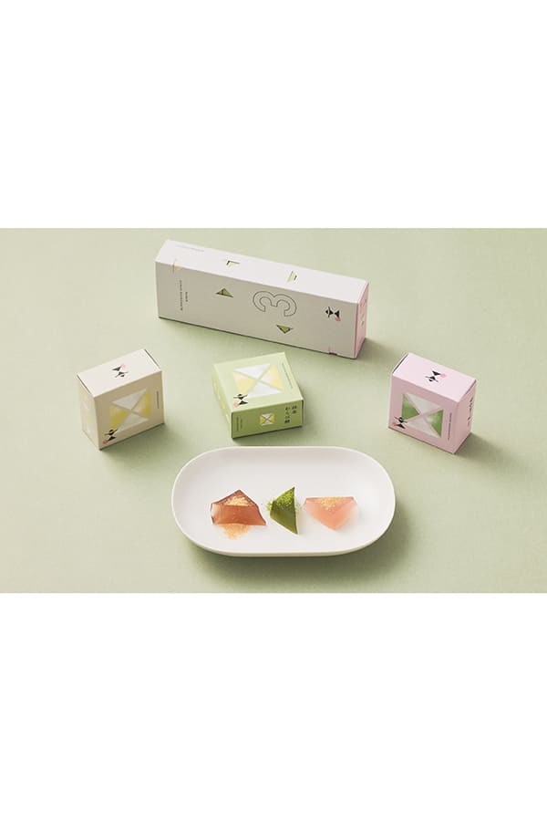 3種のわらび餅詰合せ。黒蜜、抹茶、そして爽やかなみかんの3つの味。上品な甘みで京菓子らしい美味しさです。定番の味から新鮮なフレーバーまで揃っていて、お子さんのいるご家庭へのギフトにも。つめたく冷やしていただくと一層美味しく、母の日や父の日、お中元の季節にもいいですね。