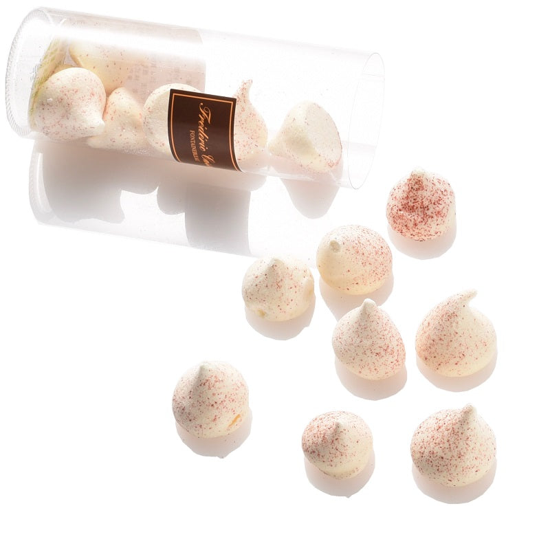 カリッと焼き上げたメレンゲに、フランボワーズのフリーズドライをまぶした「ムラング・フランボワーズ」。爽やかな酸味と、しゅわしゅわ溶ける口当たりが絶妙。お世話になった方へのプチギフトに。