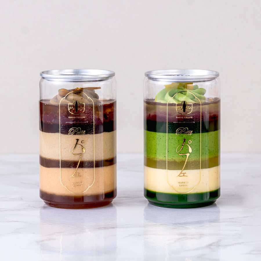 自慢の石臼挽抹茶と、香り高くコク深いほうじ茶、それぞれに合う究極のバランスを追求した「Petitパフェ」。つぶあんやムース、柑橘のゼリーなど、食べ進めるごとに美味しさが広がります。