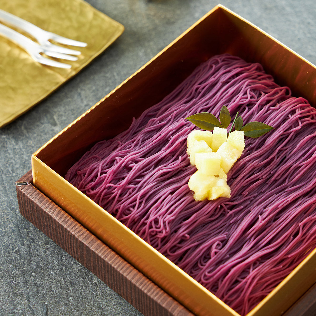 パッと見ただけでは「これが大福……?」と不思議な感覚になりますが、「高級芋菓子 しみず」が生み出すこちらのスイーツの名は、ずばり「モンブラン大福」。紫芋の焼き芋を丁寧に裏ごしして、焼き芋と生クリームの甘みを求肥に包み込んだこだわりのスイーツです。